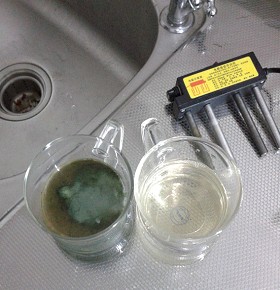 有些凈水器經(jīng)銷商為了自身商業(yè)目的,向市民介紹新功能飲用水,說自來水水質(zhì)差,要經(jīng)過再處理才能放心飲用。為了讓市民信服自己,他們當(dāng)場做電解自來水的實(shí)驗(yàn),同時(shí)還電解純凈水作比較。常見的是以鐵棒為陽極、鋁棒為陰極,插入水杯中,通電后水被電解。純凈水杯中,反應(yīng)較慢,水質(zhì)微黃清澈;自來水杯中,反應(yīng)較快,水體發(fā)暗,有一些顏色明顯的絮狀物。他們于是就欺騙大家說這些絮狀物是自來水中含有的重金屬化合物和雜質(zhì),對人體有害,而解決的最好辦法就是購買凈水設(shè)備,通過凈化處理,自來水就能變成有益健康的功能水。